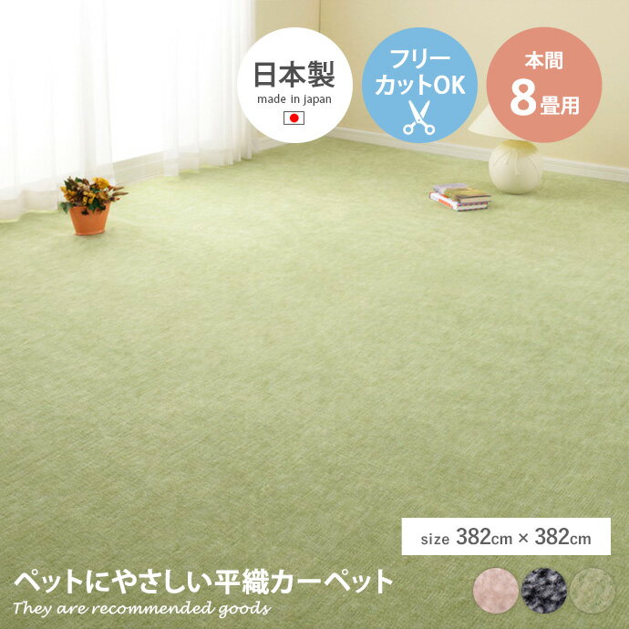 【11%OFFクーポン配布中★3/1に使える】 日本製 敷き詰めカーペット ラウム 本間8帖 8畳 フリーカット ペット 犬 猫 平織 シンプル 約382×382cm