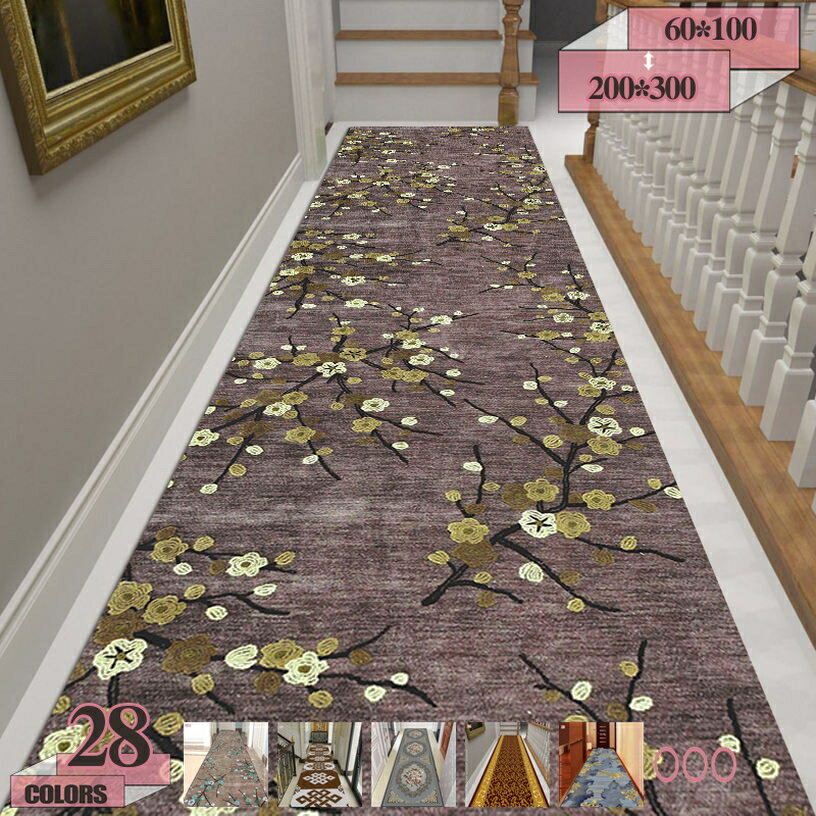 廊下敷き マルチロールカーペット 吸着マット 洗える 厚み4mm ずれない キッチンマット 階段カーペットマット 床保護 キズ防止 滑り止めマット チェアマット タイルマットカーペット 床暖房対応 騒音対策 民族風 花柄 gratiahome