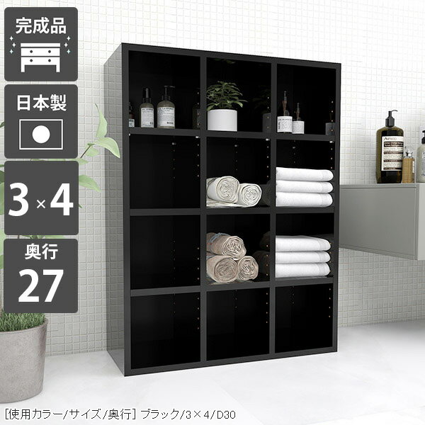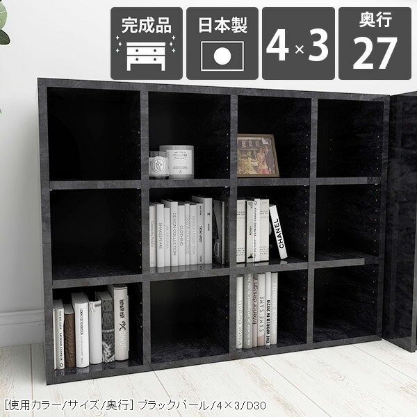 本棚 カラーボックス ディスプレイラック オープンラック 4段 A4 大容量 ラック 棚 シェルフ 完成品 リビング収納 ブラック 黒 カラーラック 隙間 本収納 高級感 高級 マルチラック 漫画 コミックラック フリーボックス フリーラック 日本製 インテリア 3×4/D27-black ☆