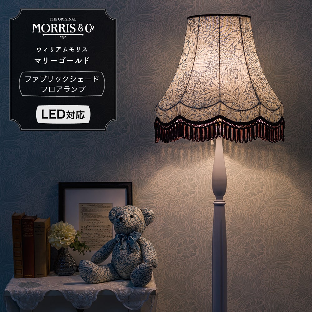 [10%OFFクーポン配布×25日限定] フロアランプ 照明 かわいい ライト LED対応 ウィリアムモリス マリーゴールド ファブリックシェード [ 洋風 北欧 William Morris ゴシック 寝室 リビング] JQ