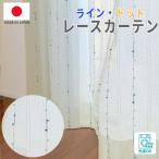 ブルーライン レースカーテン 防炎 洗濯可能 1cm単位 オーダーカーテン 日本製 送料無料 ボーダー ストライプ ドット 刺繍
