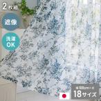 レースカーテン ブルー フラワー 柄 フェミニン 見えにくい 日本製 18サイズ UVカット 遮像 ウォッシャブル カーテン 一人暮らし 新生活 幅100