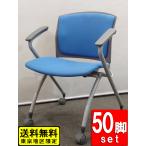 会議チェア 50脚セット ミーティングチェア キャスター付き スタッキングチェア 肘付き ブルー アイコ 中古