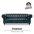 ソファ ソファー 3人掛けソファ 三人掛け 3人用 チェスターフィールド アンティークブルー 本革 座面ボタン Clubman クラブマン VXB3L9