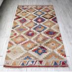 【15%OFFクーポン対象】トルコ手織りキリム・ユンジュ 草木染206×144cmブルー&レッド