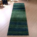 ギャッベ 最上級の細かな織り ロリアタシュ 268x78cm ブルーグリーン グラデーション