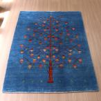 ギャッベ バナフシェ 細かな織り 189x130cm ブルー ザクロの実をつけた生命の木