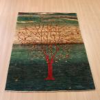 ギャッベ ノウバフト 細かく緻密な織り 162x110cm 生命の木のある風景 グリーン イラン産手織りラグ