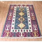 色にこだわるワンランク上のカイセリキリム 186x123cm ブルー&グリーン