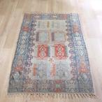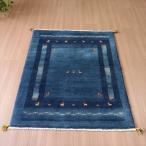 ギャッベ イランの手織りラグ 126x79cm ブルー シンプルモチーフ