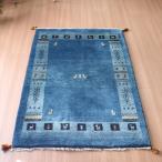 ギャッベ イランの手織りラグ 118x81cm ラクダのキャラバン ブルー