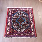 部族絨毯 トライバルラグ 66x52cm 幾何学モチーフ ブルー レッド