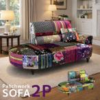 爆買 ソファー おしゃれ 肘付き 2人掛け ソファ モザイク パッチワーク カラフル ブルー パープル グリーン グレー ファブリック