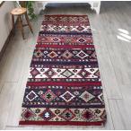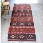 オールドキリム アダナ ランナーサイズ 260x90cm ジグザグのダイヤと星のモチーフ ブルー&レッドのボーダー