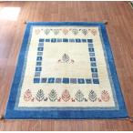ギャッベ イラン産手織りラグ 150x106cm ナチュラルアイボリー ブルー