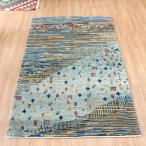 【15%OFFクーポン対象】ギャベ ギャッベ イラン産手織り 148×102cm ブルー ツートーン