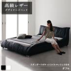 (タイムセール中) 高級レザーベッド ダブル マットレス付き プレミアムポケットコイル ダブルベッド