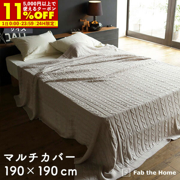 【クーポンで11%OFF★12/1 0:00〜23:59】 マルチカバー ソファカバー 190×190cm Mサイズ ケーブルニット ストーン 送料無料 綿100% ベッドカバー オシャレ こたつ カバー 北欧 寝具 コットン ベッドスプレッド 布団カバー ソファーカバー ふとん fab the home