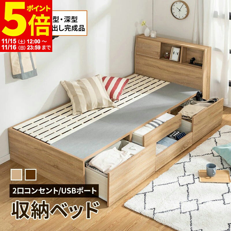 【本日クーポン5%引】 ベッド 収納付き USB 2コンセント 宮棚付き 収納 すのこベッド ベット シングルベッド セミダブルベッド ダブルベッド すのこ 引き出し付き 収納ベッド USBポート 宮付 ベッドフレーム シングル セミダブル ダブル クイーン キング