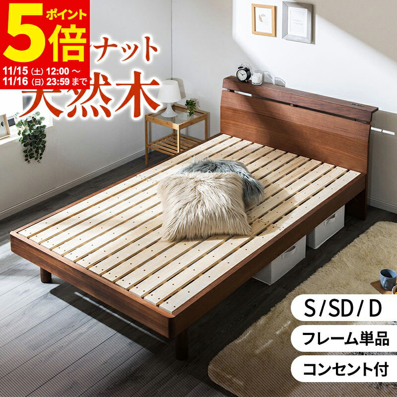 ベッド セミダブル すのこベッド ベッドフレーム おしゃれ ローベッド セミダブルベッド 宮付き コンセント付 木製 すのこ USB スマホスタンド付 ベット