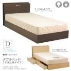 ベッドフレーム ダブルベッド コンセント付き ちょい棚付き ダブル ベッド ヘッドサイド棚 ライト付き 木製 選べる2色 国産