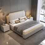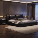 【並行輸入品】HONGYISHI モダンライト ラグジュアリー レザーベッド モダン キングサイズ 布張りプラットフォーム ベッドフレーム 収納