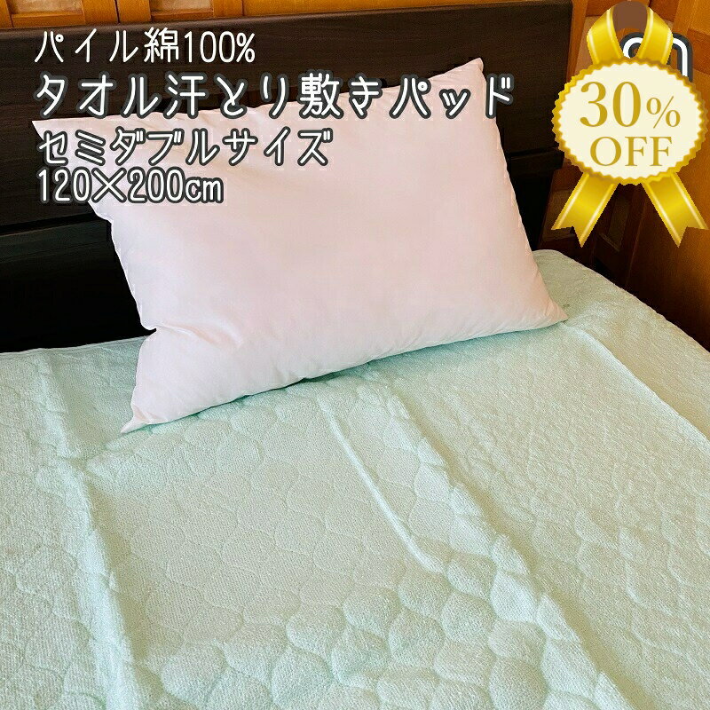 【家計応援★30%OFF】セミダブル 爽やか パイル綿100% 敷きパッド 敷パッド 120×200cm 無地 タオル地 吸汗性 ベッドパッド オールシーズン