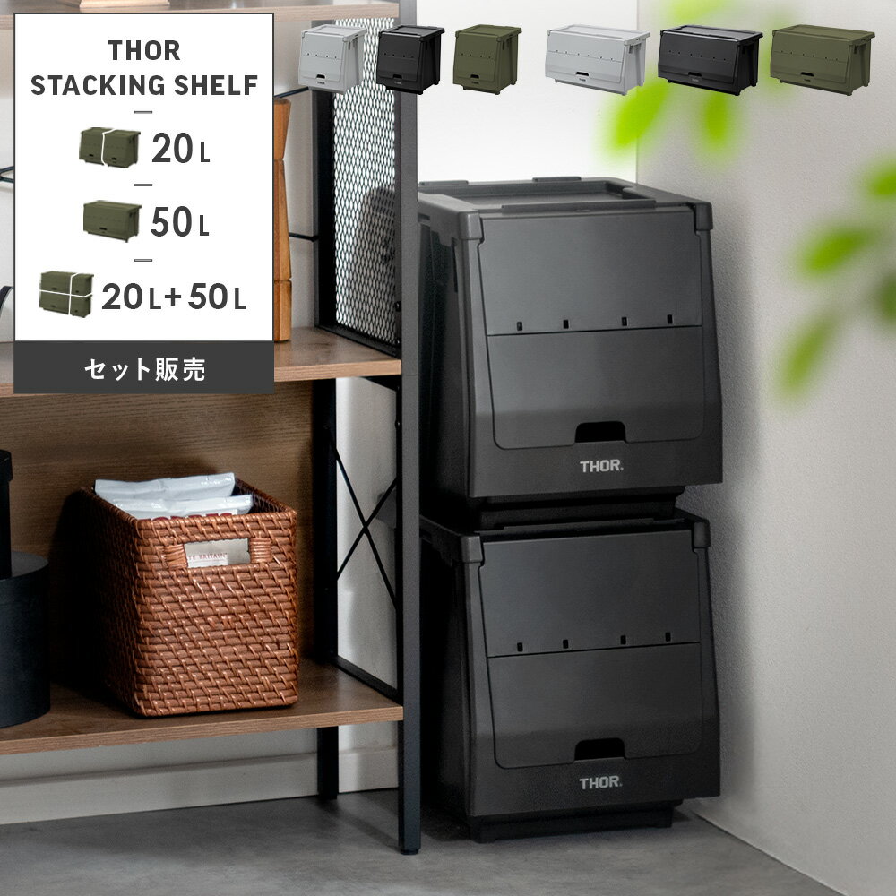 【2/1限定!全品10%OFFクーポン配布中】 収納ボックス コンテナ オシャレ コンテナボックス フタ付き おしゃれ ふた付き 蓋付き 前開き スタッキング プラスチック boxコンテナ アウトドア ベランダ 屋外 屋内 大容量 収納 インテリア THORスタッキングシェルフ