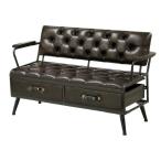 輸入家具 ベンチ ソファ アイアン フェイクレザー インダストリアル ミリタリー 収納ボックス 0241002 送料無料 直輸入 リビングスタジオ