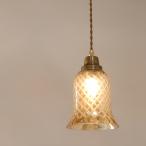 ガラスシェード ガラスペンダントランプ 1灯 コルネット ゴールドラスター 切子 格子 コロニアルスタイル レトロ