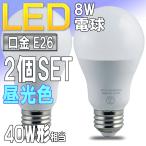 LED電球 昼光色 E26口金 一般電球形 8W 40W形相当 広配光形 PSE取得品 2個セット