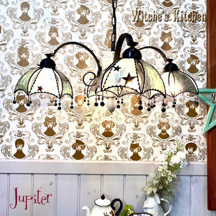 照明 おしゃれ かわいい シャンデリア ペンダントライト 4灯 シーリングライト ペンダントランプ ステンドグラス ランプ LED対応 星 アストロノーツ Apple HoLic 【 Jupiter ジュピター 】