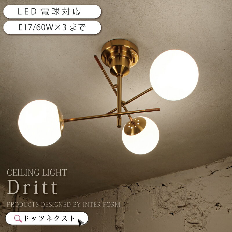 【10%OFFクーポン★23:59まで】 シーリングライト インターフォルム ガラス おしゃれ 照明器具 天井照明 ペンダントランプ 照明 3灯 led対応 ダイニング リビング キッチン 玄関 インテリア Dritt ドリット LT-4405 LT-4407 新生活 引越
