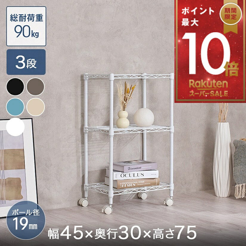 ★4日20時から!P10倍★ 棚 ラック スチールラック 収納 メタル ルミナス スチール棚 ラック 送料無料 [19mm] カラーラック キッチンワゴン キャスター付 幅45 奥行30 高さ76 3段 隙間収納 棚 ブラック ホワイト ブラウン