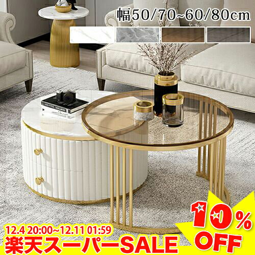 \楽天スーパーSALE★10%OFF/ ネストテーブル 大理石 丸型 ホワイト 丸テーブル セラミック センターテーブル 丸 2個セット コーヒーテーブル サイドテーブル 北欧 おしゃれ ローテーブル ガラス天板 大理石柄 石目調 引き出し 新生活 1年保証