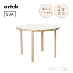 artek アルテック テーブル 90A 白 ホワイト ダイニングテーブル 4人 アアルト Φ100cm 4本脚 ラウンド 丸 カフェ 北欧家具 木製 正規品 クーポン不可