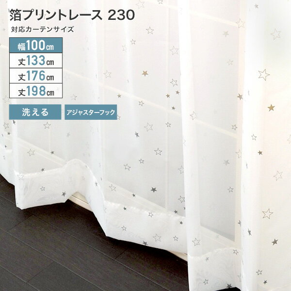 箔プリントレース 230 ホワイト 2枚組 100×133cm 100×176cm 100×198cm レース カーテン UVカット 洗えます アジャスターフック