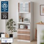 食器棚 キッチンボード 幅70 奥行48 高さ200 完成品 国産 モイス加工 レンジ台 レンジボード 大容量 キッチン 収納 木目 フルオープンレール 代引不可