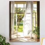 タペストリー 壁掛け 壁飾り インテリア ファブリックポスター おしゃれ 部屋飾り 目隠し 寝室 カーテン 背景布 カーテン越しの広い庭の絵柄 幅70cmx縦100cm