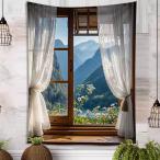 タペストリー 壁掛け 壁飾り インテリア ファブリックポスター おしゃれ 部屋飾り 背景布 目隠し 寝室 カーテン 窓と日差しと山々の絵柄 幅70cmx縦100cm