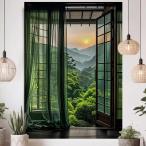 タペストリー 壁掛け 壁飾り インテリア ファブリックポスター おしゃれ 部屋飾り 背景布 目隠し 寝室 カーテン 窓と自然豊かな風景の絵柄 幅70cmx縦100cm