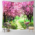 タペストリー 壁掛け 壁飾り インテリア ファブリックポスター おしゃれ 部屋飾り 背景布 目隠し 寝室 カーテン 満開の花と森の小道の絵柄 幅150cmx縦130cm