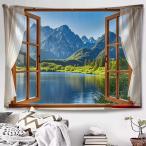 タペストリー 壁掛け 壁飾り インテリア 布ポスター おしゃれ 部屋飾り 背景布 癒し 目隠し 寝室 カーテン 窓から望む山と湖の自然風景 幅100cmx縦70cm