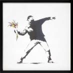 【限定7%OFFクーポン】 バンクシー アートパネル おしゃれ モダン 壁面 アート 壁画 Banksy メッセージ アート フレーム パネル フラワー ボンバー 花束 花 投げる 少年 男性 L 63.5cm 88.5cm 展覧 絵画 名画 風刺 絵 壁掛け 額入り 油絵 ポスター トイレ 玄関