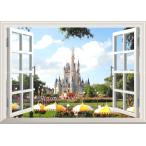 絵画風 壁紙ポスター (はがせるシール式) -窓の景色- ディズニーシーの夜景 ディズニーリゾート 【窓仕様/トリックアート】 キャラクロ DNS-001MA2 (A2版 594mm×420mm) <日本製> ウォールステッカー ディズニー お風呂ポスター