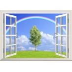 絵画風 壁紙ポスター (はがせるシール式) 虹と空と雲と緑のハーモニー レインボーアーチ 【窓仕様】 キャラクロ SRBW-003MA2(A2版 594mm×420mm)<日本製>