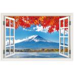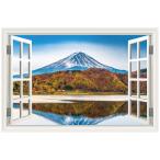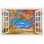 ウォールステッカー 富士山 紅葉 窓枠 日本製 秋 湖 沼 fuji 自然 壁紙 シール ポスター 絵画