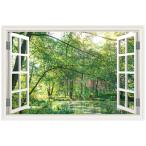 ウォールステッカー 森林 窓枠 日本製 木 新緑 山 湖 沼 植物 自然 壁紙 シール ポスター 絵画 お風呂 浴室 DIY リフォーム リメイク