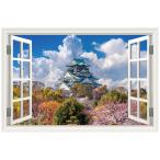 ウォールステッカー 大阪城 窓枠 日本製 天守閣 桜 自然 壁紙 シール ポスター 絵画 お風呂 浴室