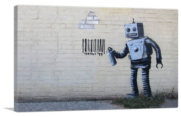 【スーパーSALE10%OFF】バンクシー アートパネル BANKSY Banksy「コニー アイランド バーコード ロボット/Coney Island Barcode Robot」キャンバスジークレ 絵画 ポスター 絵 バンクシー作品 【輸入品】